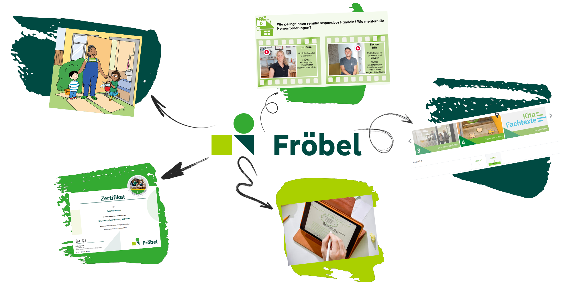 Fröbel benötigte eine digitale Lösung, die praxisorientierte und flexibel nutzbare Inhalte bietet. Die Herausforderung lag darin, die pädagogische Standards von Fröbel so zu übertragen, dass sie intuitiv zugänglich und im Arbeitsalltag umsetzbar sind. Gefordert war eine Plattform, die Benutzerfreundlichkeit und inhaltliche Tiefe vereint und den Ansatz von Fröbel authentisch abbildet.